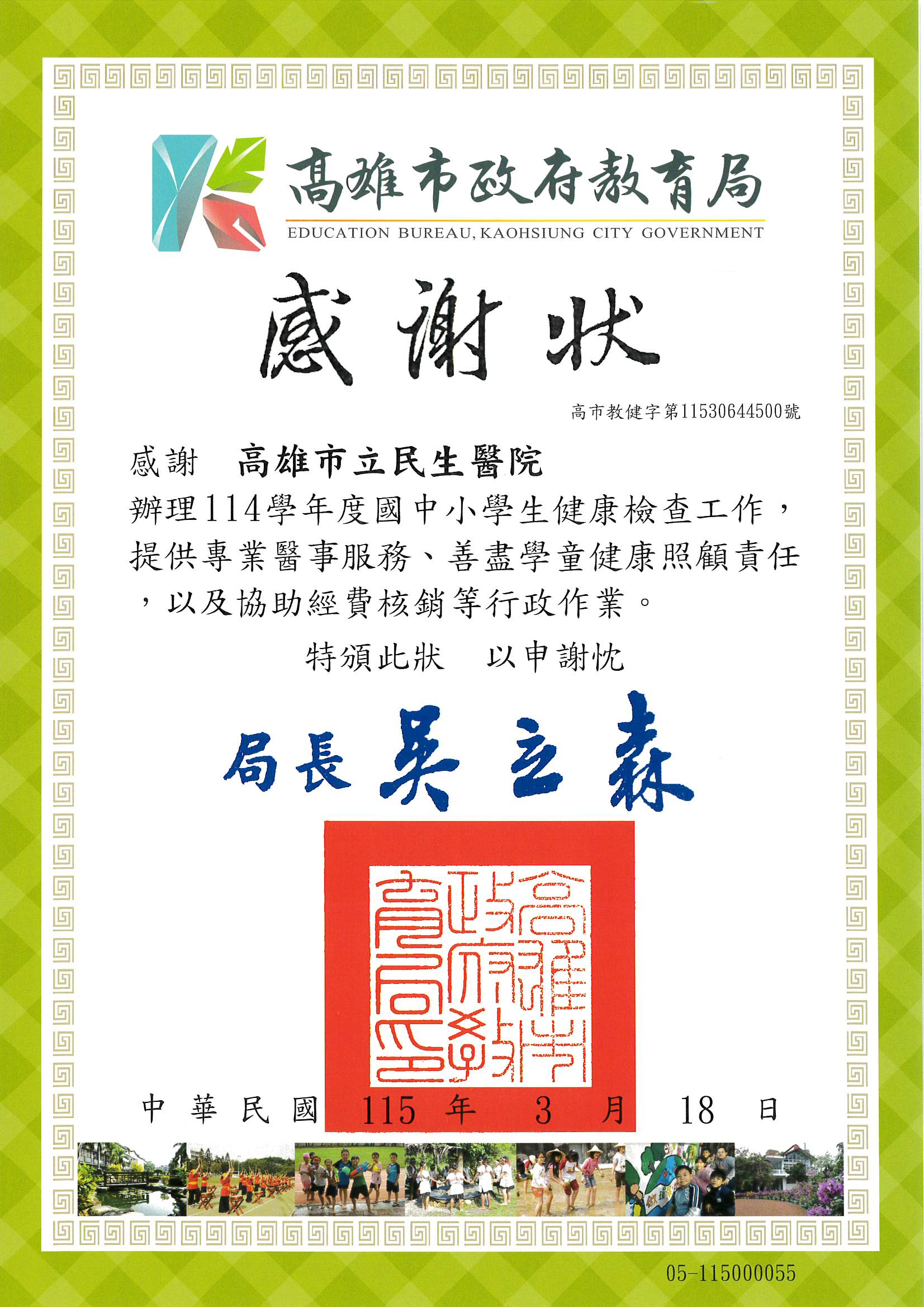 03-18 國民中小學生健康檢查感謝狀(教育局)