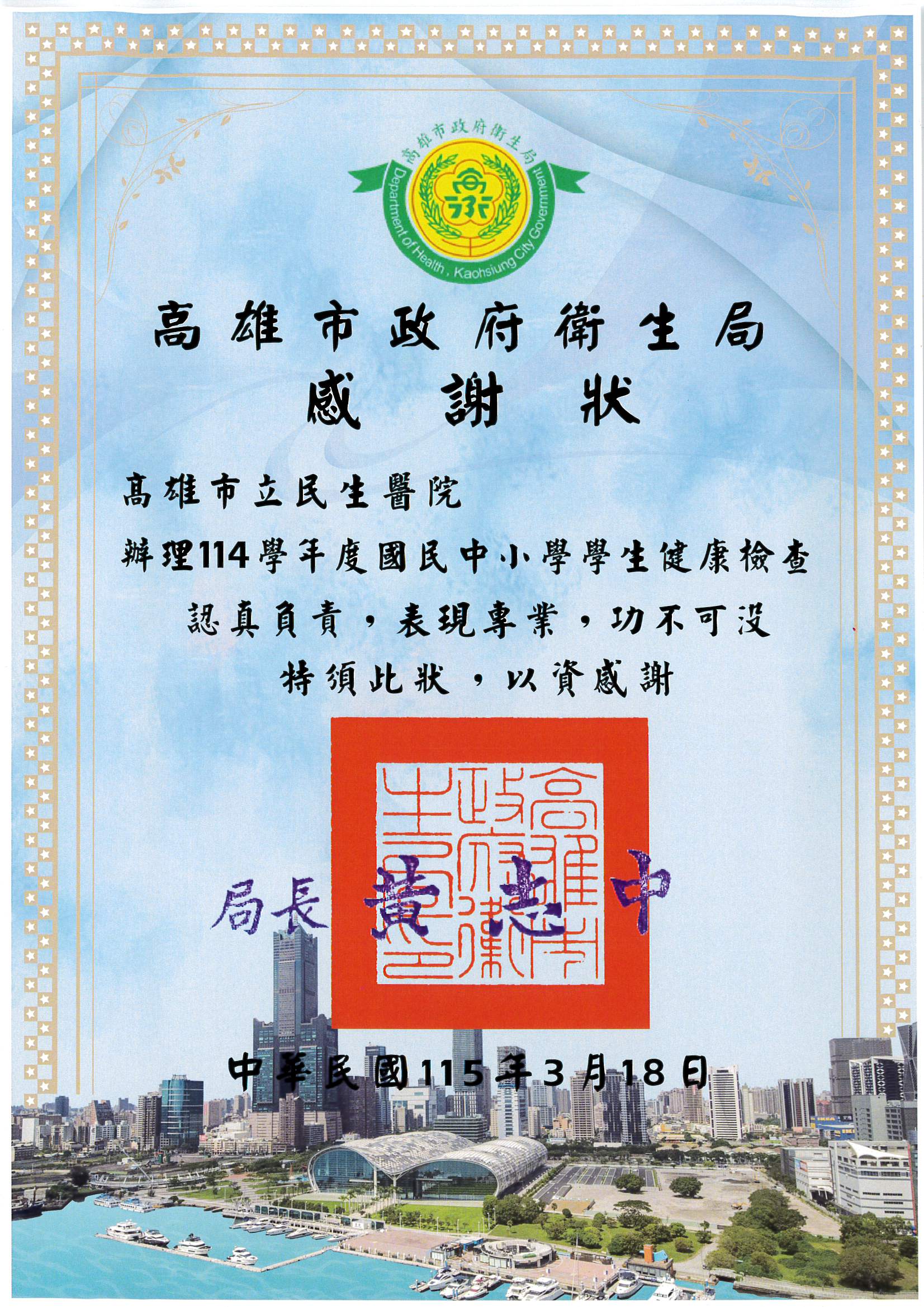 03-18 國民中小學生健康檢查感謝狀(衛生局)