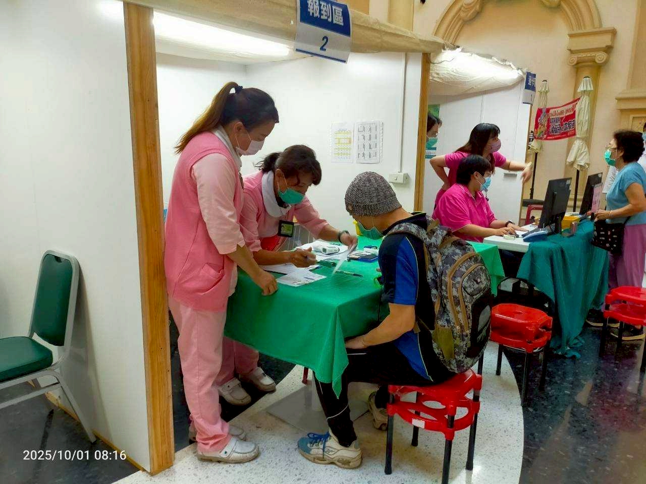 民生醫院昨日上午啟動「114年新冠/流感疫苗專診」,提供公費疫苗接種服務,一早就有多位符合公費疫苗資格民眾,包含65歲以上長者、高風險慢性病人等民眾踴躍到場接種疫苗,民生醫院的疫苗專診區設於一樓中庭,提供網路與現場皆可掛號的雙軌服務,方便民眾預約與接種,院方將接種流程簡化為「過卡、報到、理學、注射、休息」五大步驟,現場並安排專人引導,加上清楚動線規劃,有效讓前來接種民眾皆能快速、安全地完成疫苗施打。